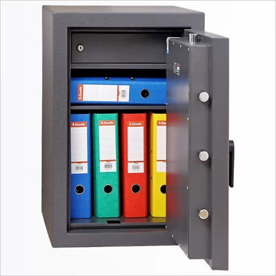 Сейф оснащен ключевым немецким замком STUV класса VDS 1. Замок данной модели защищен от попыток высверливания и выбивания сверхпрочной пластиной из высоколегированной марганцовистой стали, которая встроена в корпус сейфа в районе замка.